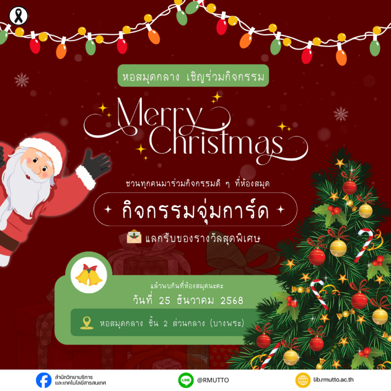 ประกาศผลรางวัล กิจกรรม library game by RMUTTO library ประจำเดือนธันวาคม 2568 ข่าวประชาสัมพันธ์ ประกาศผลรางวัล กิจกรรม library game by RMUTTO library ประจำเดือนธันวาคม 2568