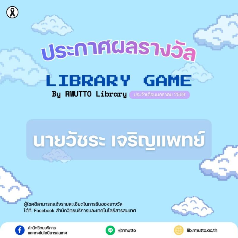 ประกาศผลรางวัล กิจกรรม library game by RMUTTO library ประจำเดือน มกราคม 2569 ข่าวประชาสัมพันธ์ ประกาศผลรางวัล กิจกรรม library game by RMUTTO library ประจำเดือน มกราคม 2569