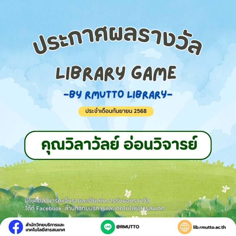 ประกาศผลรางวัล library game by RMUTTO library ประจำเดือนสิงหาคม 2568 ข่าวประชาสัมพันธ์ ประกาศผลรางวัล library game by RMUTTO library ประจำเดือนสิงหาคม 2568