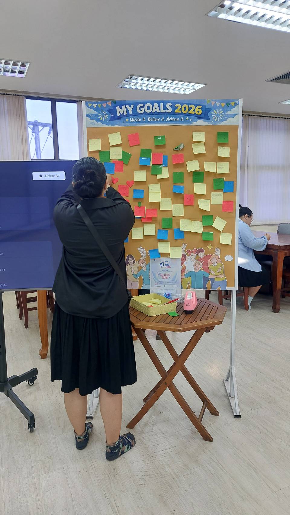 ภาพกิจกรรม My Goals 2026 โดยมีผู้สนใจร่วมเขียนเป้าหมายที่ตั้งใจทำในปี 2026 ลงในโพสต์อิทและติดที่บอร์ด My Goals 2026 โดยมีผู้ได้รัของรางวัลในการร่วมกิจกรรมครั้งนี้ด้วย โดยได้มีการจัดกิจกรรมในระหว่างวันที่ 5-15 มกราคม 2569 My Goals 2026 เพราะทุกความสำเร็จ เริ่มต้นจากการกล้าเขียนเป้าหมายและลงมือทำ 420774_0 420775_0 420776_0 420777_0 420778_0 420779_0 420780 420781 420782 420783 420784_0 420785_0 S__29458486 S__29458491 S__29458494 S__29573123