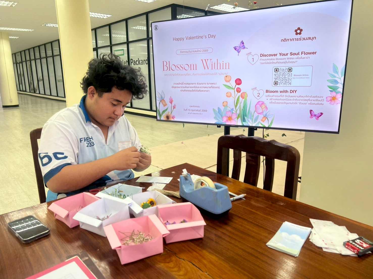 วันที่ 13 กุมภาพันธ์ 2569 หอสมุดกลางเขตพื้นที่บางพระ ได้จัดกิจกรรม วันวานเลนไทน์ 2569 กับกิจกรรม Discover Your Soul Flower ทำแบบทดสอบ “Blossom Within” เพื่อค้นหาว่าดอกไม้ชนิดไหนที่ซ่อนอยู่ในใจคุณ และ กิจกรรม Bloom with DIY การประดิษฐ์ช่อดอกไม้ประจำตัวจากวัสดุเพื่อเป็นของขวัญแทนใจ โดยมีน้องๆ นักศึกษาได้ให้ความสนใจกับกิจกรรมในครั้งนี้ ณ หอสมุดกลาง ส่วนกลาง (บางพระ) LINE_ALBUM_valentines 2026_260213_2 LINE_ALBUM_valentines 2026_260213_3 LINE_ALBUM_valentines 2026_260213_6 LINE_ALBUM_valentines 2026_260213_5 LINE_ALBUM_valentines 2026_260213_7 LINE_ALBUM_valentines 2026_260213_10 LINE_ALBUM_valentines 2026_260213_13 LINE_ALBUM_valentines 2026_260213_12 LINE_ALBUM_valentines 2026_260213_17 LINE_ALBUM_valentines 2026_260213_18 LINE_ALBUM_valentines 2026_260213_20 LINE_ALBUM_valentines 2026_260213_25 LINE_ALBUM_valentines 2026_260213_26 LINE_ALBUM_valentines 2026_260213_27 LINE_ALBUM_valentines 2026_260213_30 LINE_ALBUM_valentines 2026_260213_29 LINE_ALBUM_valentines 2026_260213_32 LINE_ALBUM_valentines 2026_260213_34 LINE_ALBUM_valentines 2026_260213_33 LINE_ALBUM_valentines 2026_260213_36 LINE_ALBUM_valentines 2026_260213_38 LINE_ALBUM_valentines 2026_260213_37 LINE_ALBUM_valentines 2026_260213_40 LINE_ALBUM_valentines 2026_260213_42 LINE_ALBUM_valentines 2026_260213_41 LINE_ALBUM_valentines 2026_260213_45 LINE_ALBUM_valentines 2026_260213_47 LINE_ALBUM_valentines 2026_260213_52 LINE_ALBUM_valentines 2026_260213_51 LINE_ALBUM_valentines 2026_260213_57 LINE_ALBUM_valentines 2026_260213_59