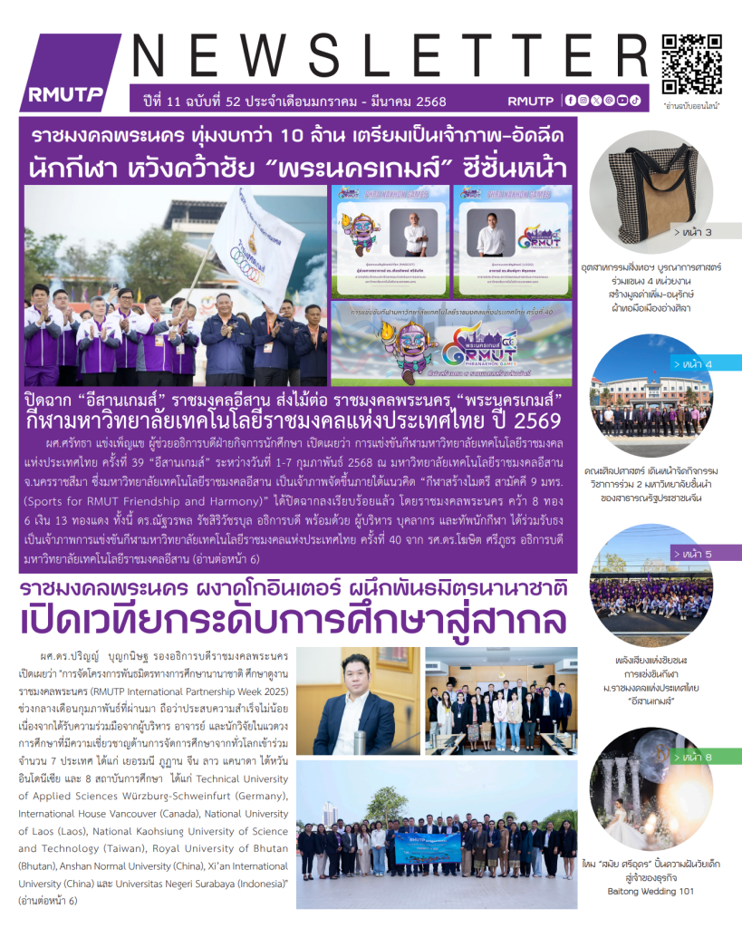 จดหมายข่าวมทร.พระนคร (RMUTP Newsletter) ฉบับที่ 52 ประจำเดือนมกราคม – มีนาคม 2568